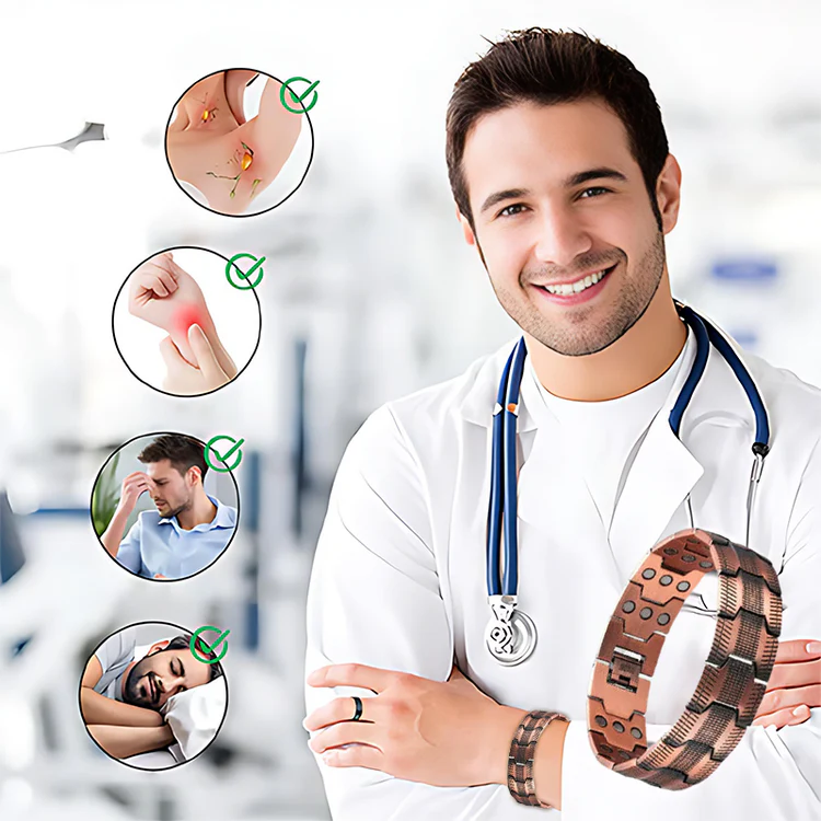 Most men's bracelets fail because they're made from cheap.plated alloys that quickly fade and irritate the skin.This bracelet, crafted from solid 99.99% pure copper with aprotective lacquer coating, tackles the primary villain behinddisappointing accessories. it's hypoallergenic, lead- andnickel-free, ensuring it won't cause irritation and is built to last.