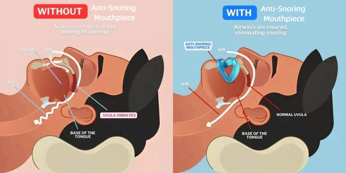 Snoring happens when the muscles in your throat relax during sleep, narrowing your airway and causing vibrations. The SmileFitPro Anti-Snoring Mouthpiece solves this naturally and effectively.