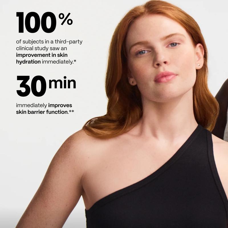 - 96% of subjects from a third-party clinical study saw an improvement in skin hydration over a 12 hour period* with barrier support & glowing radiant skin.